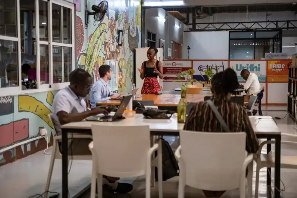 Jean in gesprek met ondernemers in haar hub. Foto: Badru Katumba
